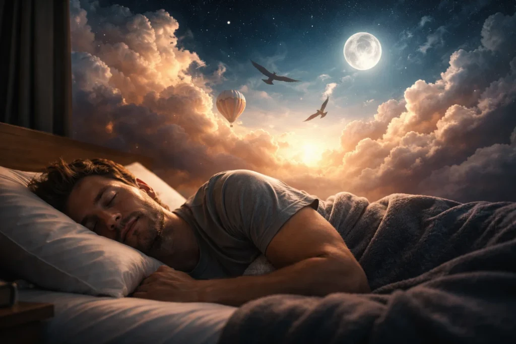After months of pressure, a man dreamed that he was lying in a field watching a calm blue sky with slow-moving clouds. He woke feeling strangely relieved. In real life, he had finally begun taking rest seriously. The dream mirrored the return of inner space after prolonged stress.